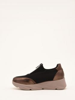Estas modernas zapatillas deportivas de cuña ofrecen una combinación perfecta de estilo y comodidad. Con un práctico cierre de cremallera en la parte frontal, estas zapatillas destacan por sus detalles metalizados que aportan un toque de elegancia. La cuña interna proporciona altura y soporte adicional, mientras que la suela de goma asegura una pisada firme y confortable. Ideales para un look casual y sofisticado, estas zapatillas son perfectas para el uso diario.